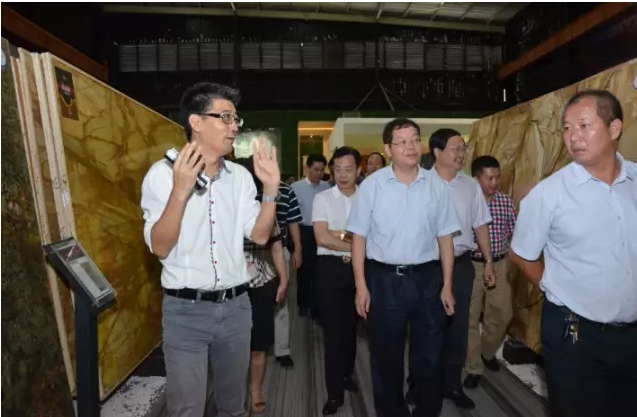 7月24日下午,德化县四套班子考察团一行,在市领导王春金、林荣忠、黄景阳及市委办、政府办、经贸局等主要负责同志的陪同下,深入到英良石材“五号仓库”学习考察。
