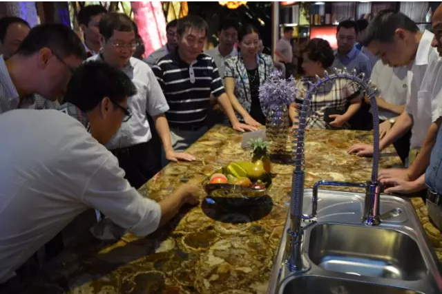 通过参观,考察团一行人一改以往对石材产业“脏,乱,差”的印象。在考察团详细的了解了石材的加工工艺后,对企业在生产过程中融入设计理念,发挥创造性思维,将精湛的加工技艺与切割拼接技术相融合,把不同颜色,不同材质的石材完美结合,创造出一幅幅美轮美奂的石画时,不住的赞叹。同时,对英良石材“五号仓库”坚持走绿色环保可循环路线及文化创意产业路线表示高度赞扬。并指出在新经济形势下,企业如何抓住机遇,勇于创新,在传统产业中融入高科技,突破传统产业发展瓶颈是至关重要的。