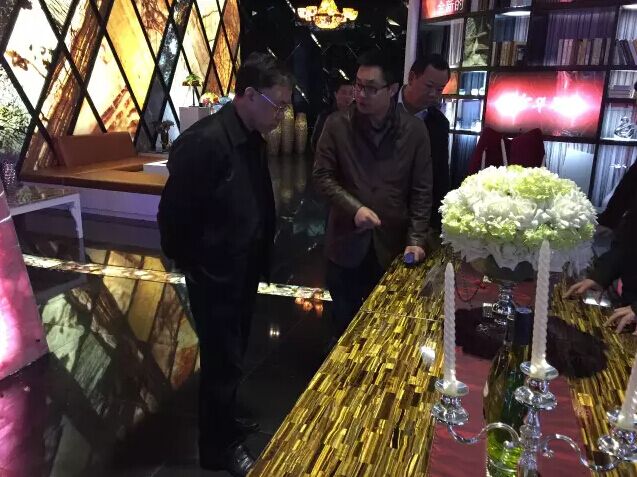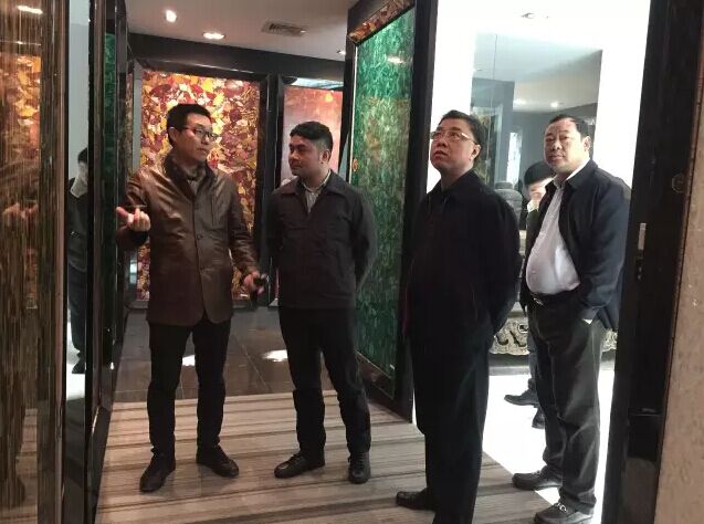 在五号仓库,考察团一行对奢石体验馆内的各种奇珍异石,矿物标本表现出浓厚的兴趣并且详细地了解了石材的开采,石材的工艺,石材的文化等多方面知识。