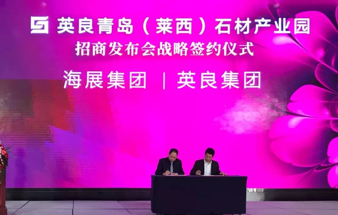 招商发布会现场,英良集团分别与青岛农商银行、青岛银行、海展集团及东亚装饰集团达成战略签约,共同助力英良青岛(莱西)石材产业园的建设与发展。