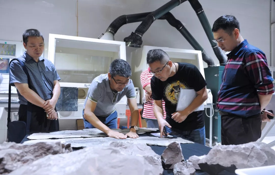 随后,国家文物局专家考察团一行与刘良董事长就如何对化石标本清修和保存进行了深入地交流与分析,对英良·世界石材博物馆翼龙足迹、凌河龙新食性等方面的研究工作进行科研指导。