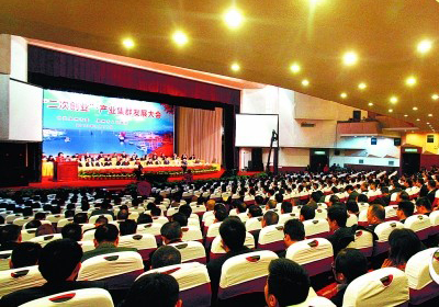 泉州千企大会隆重召开英良石材集团董事长刘良在大会上发表演讲